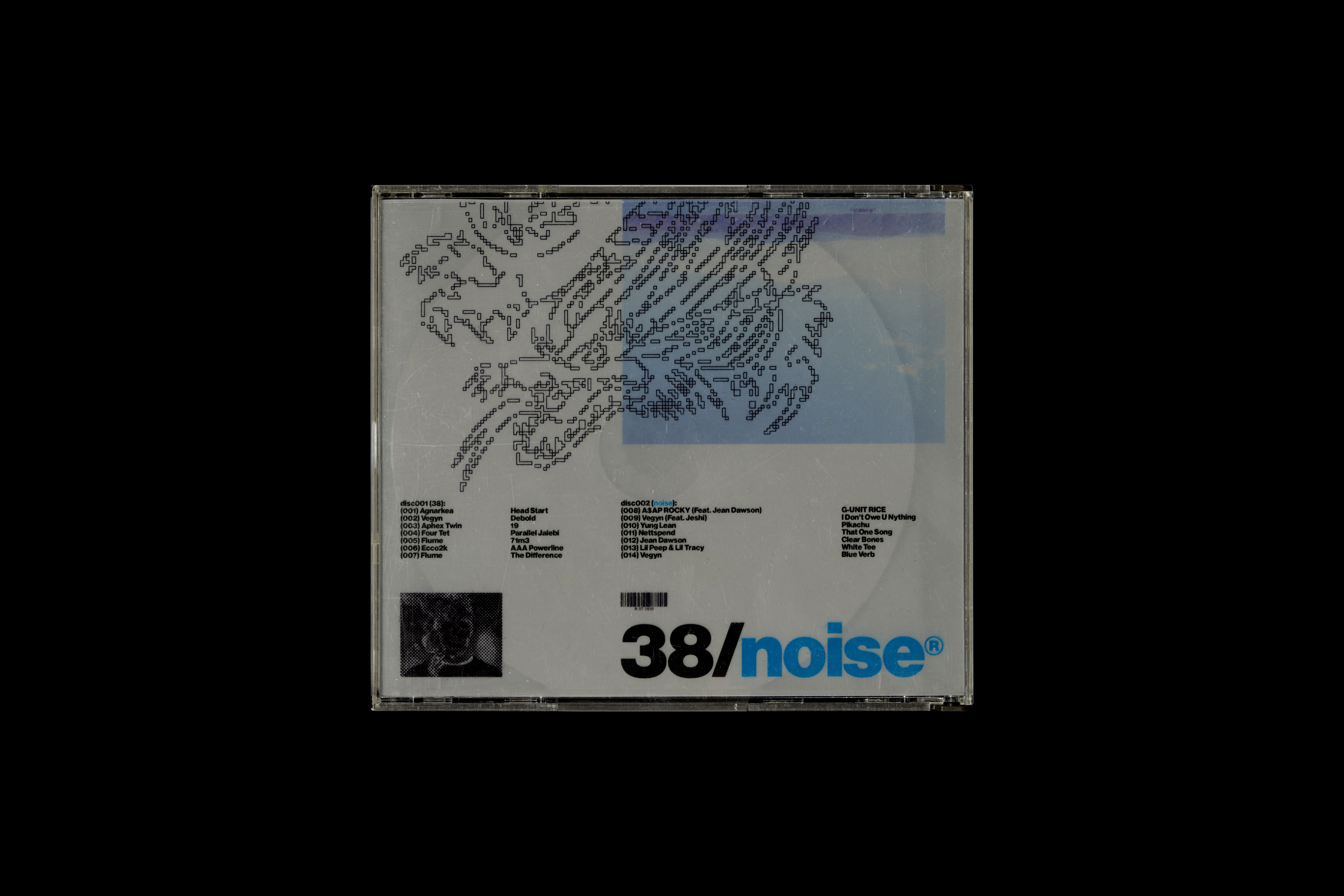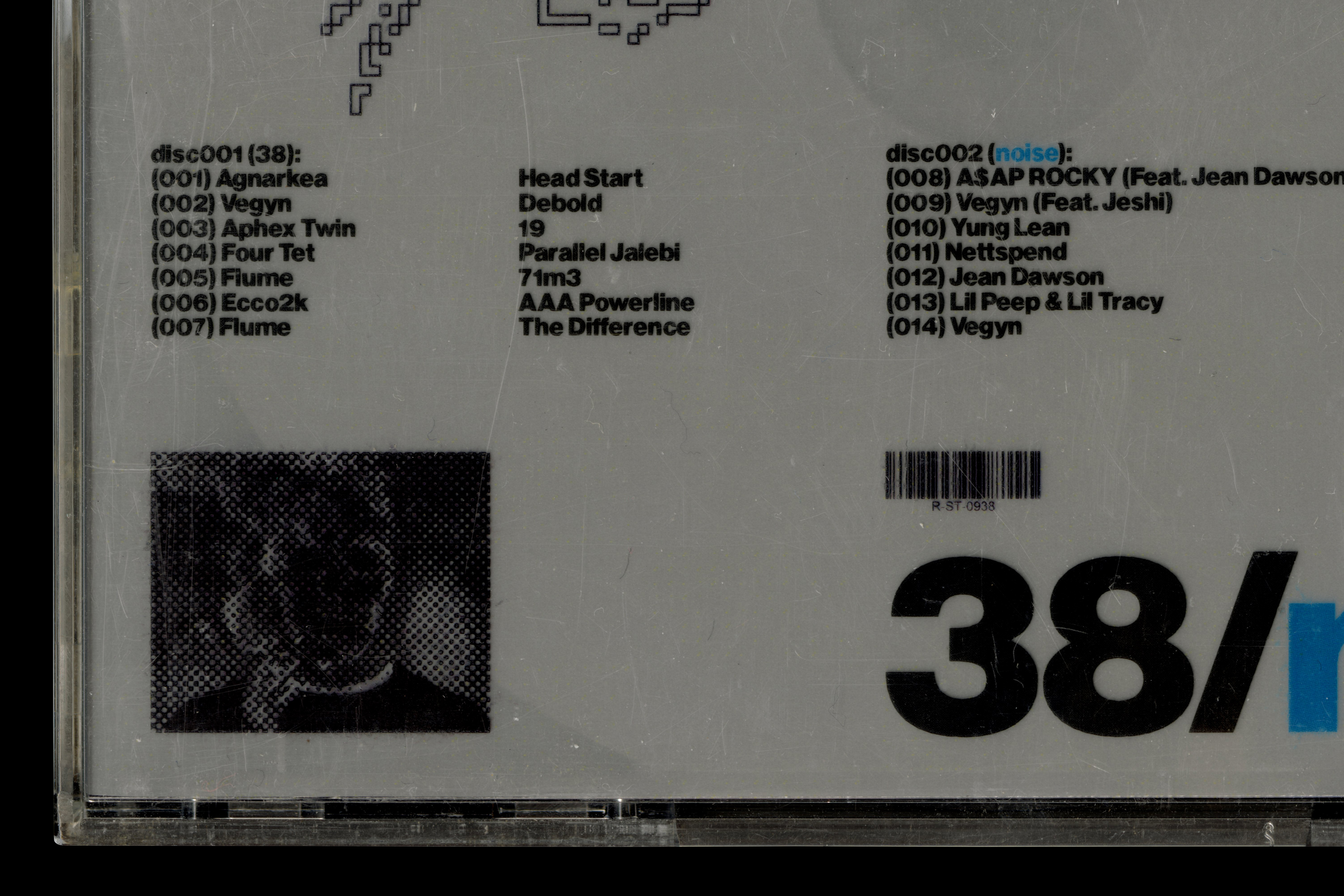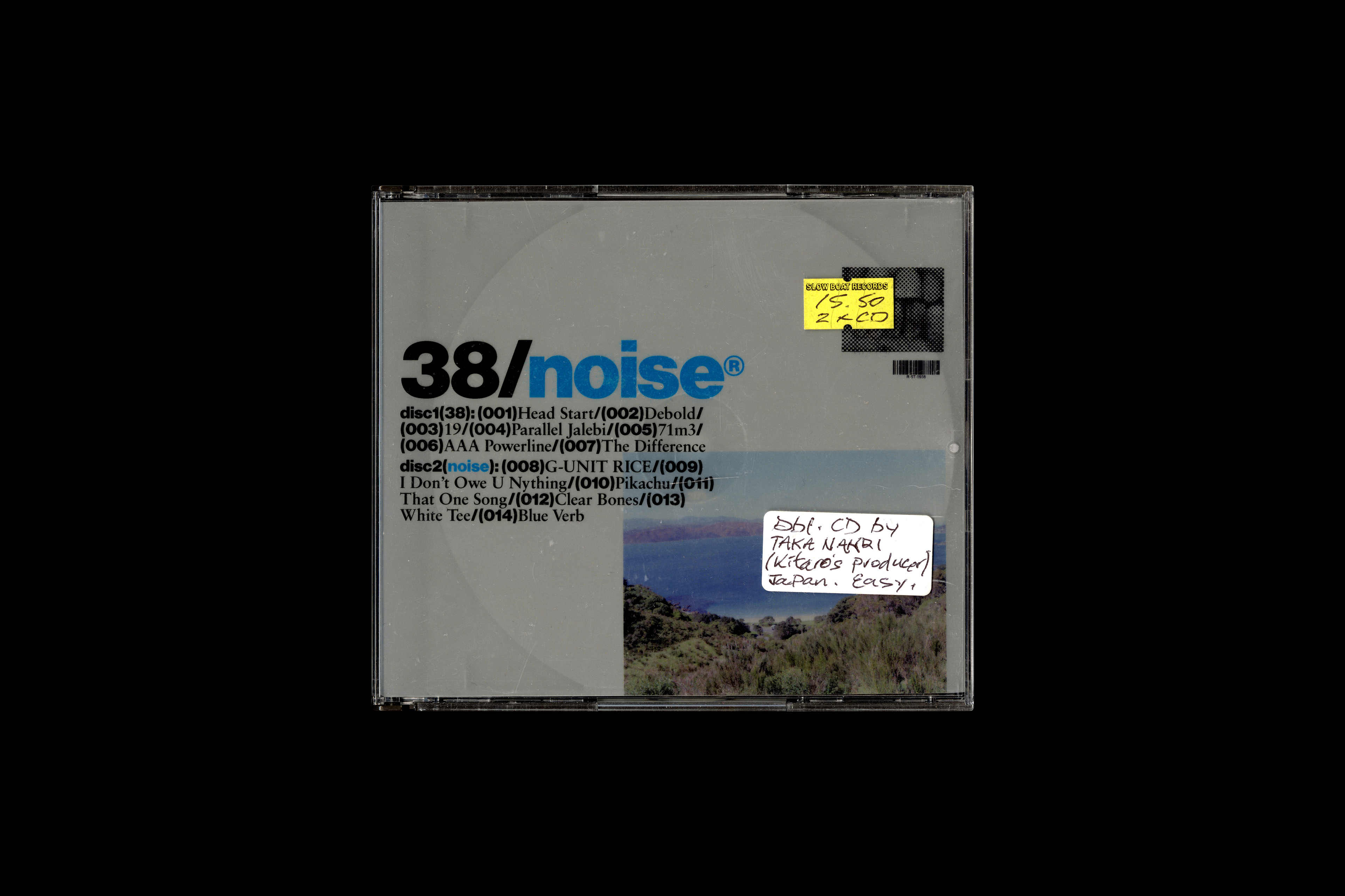 38/noise® is a 2x compact disc set I made by recycling a Japanese album from the 90s that I found at the record store. I burned two of my own playlists onto the original CDs using ITunes and an old laptop