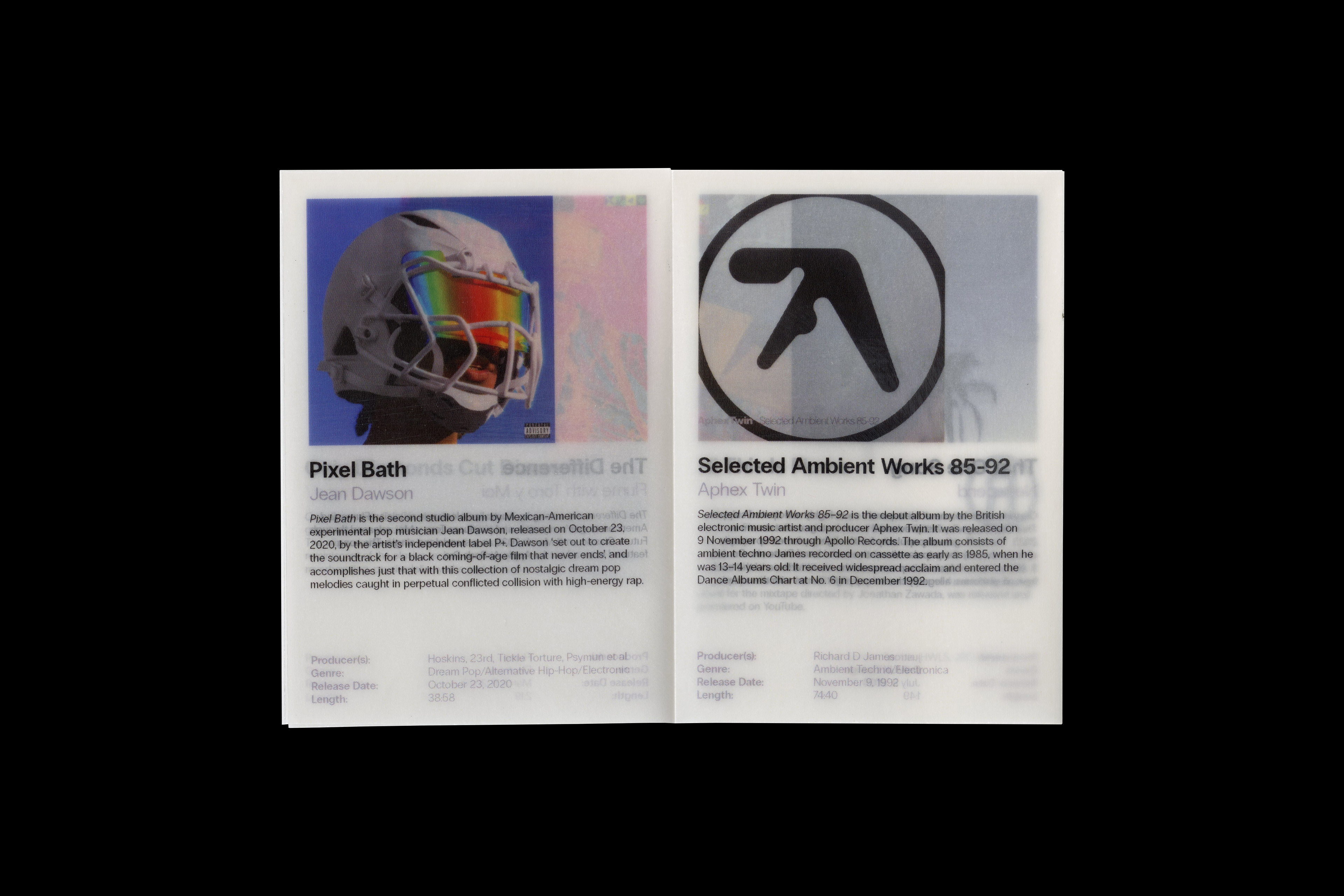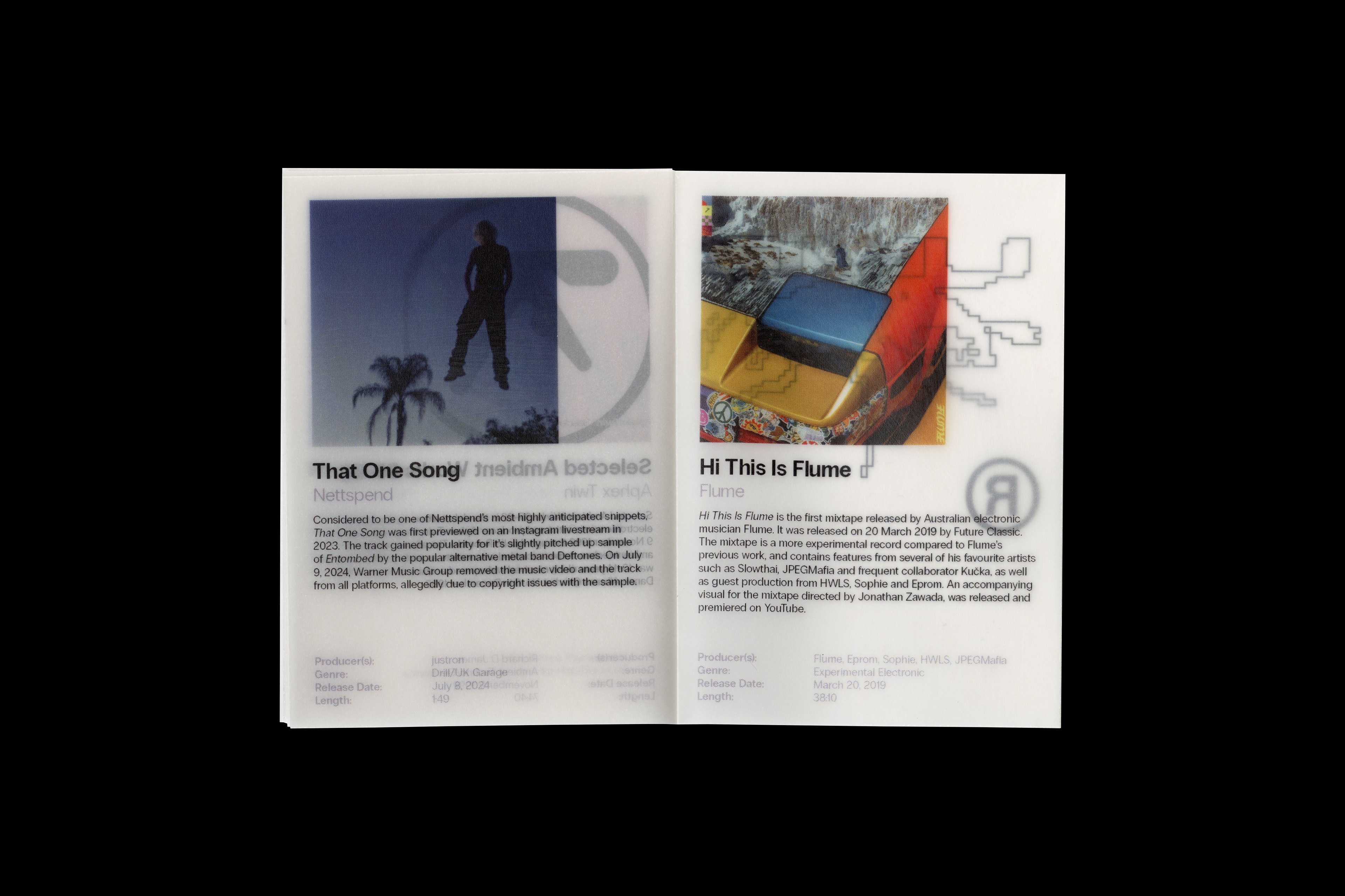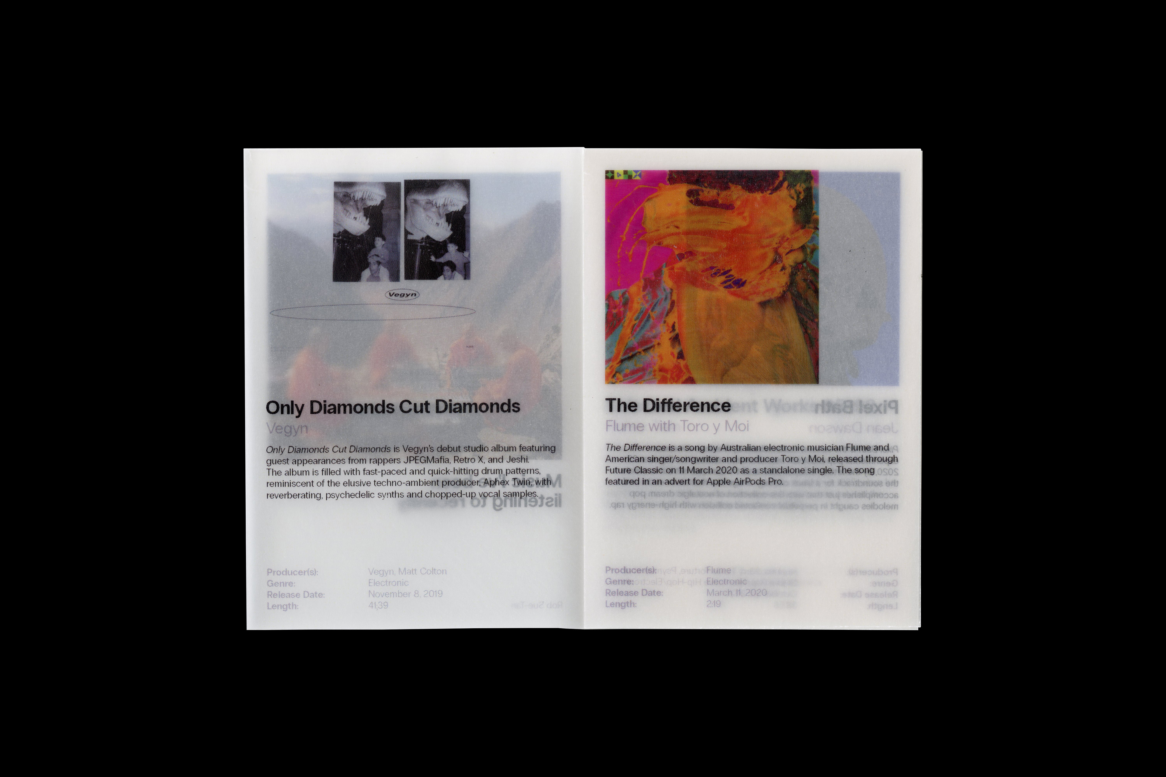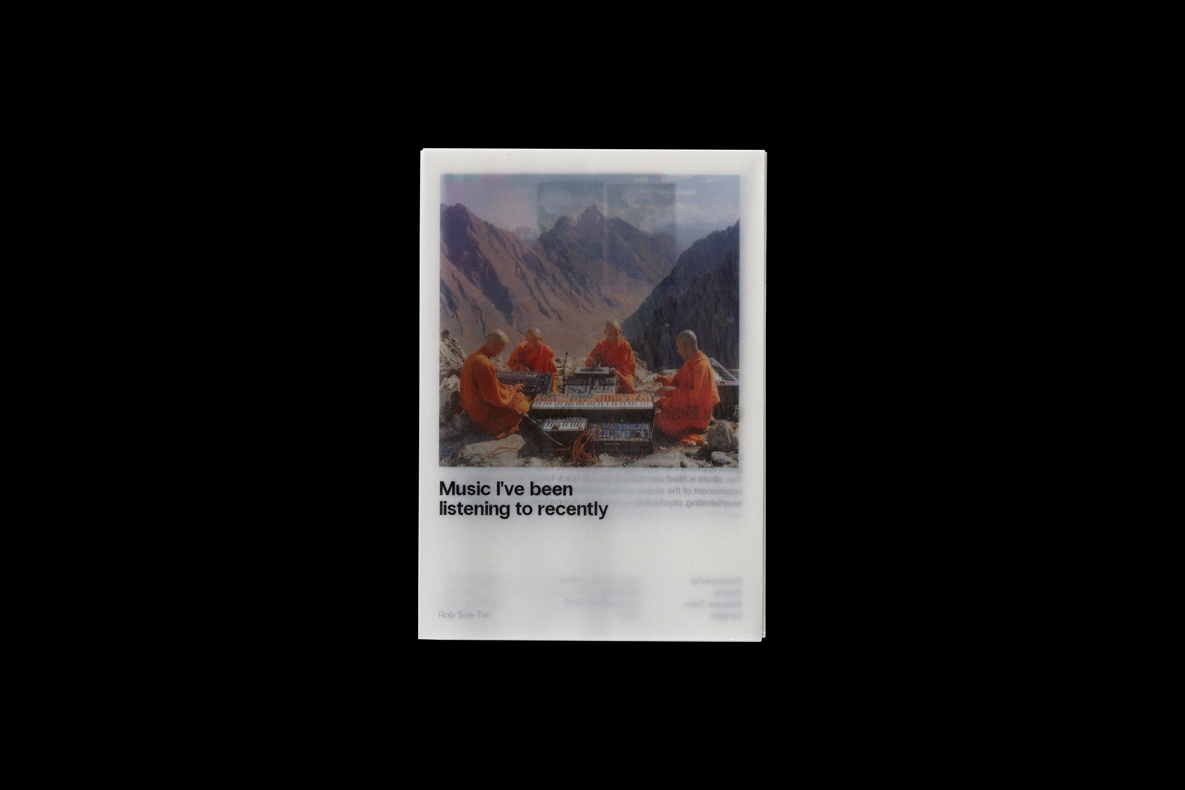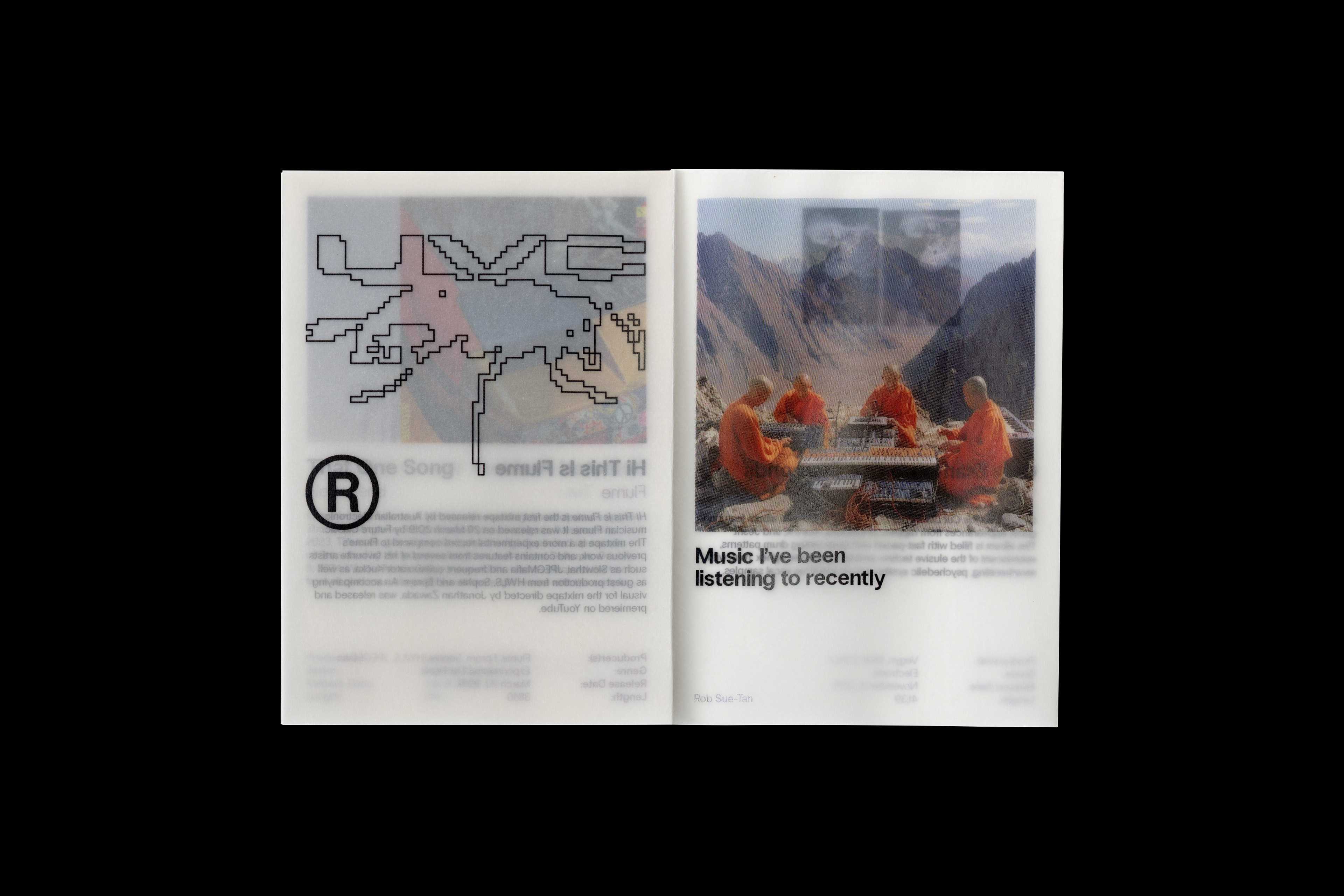 A4 trimmed and folded into an A7 mini-zine, printed onto semi transparent 90GSM tracing paper and typeset in Radio Grotesk.