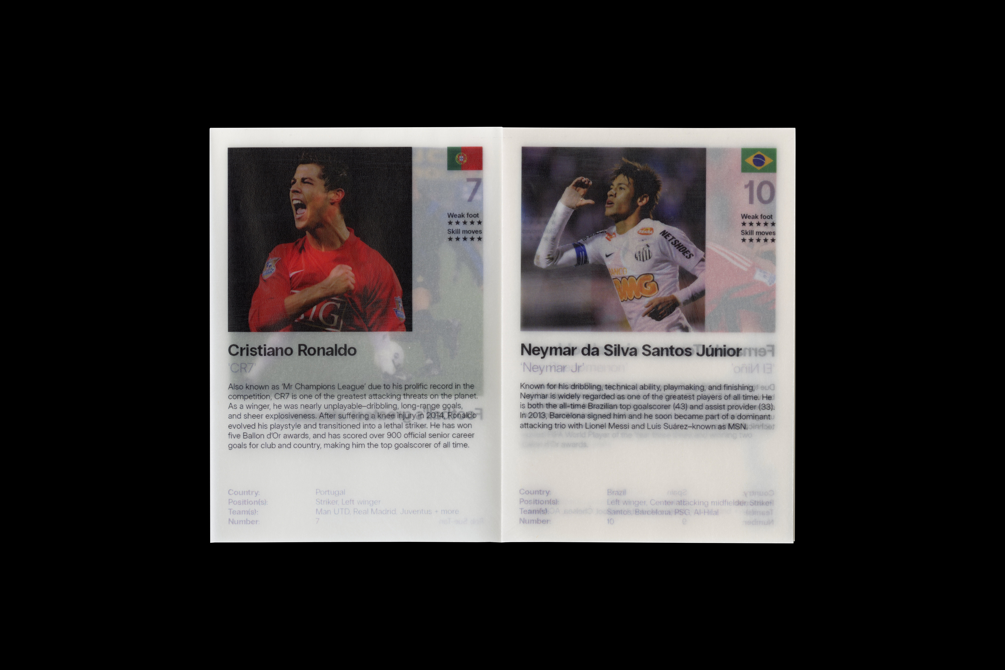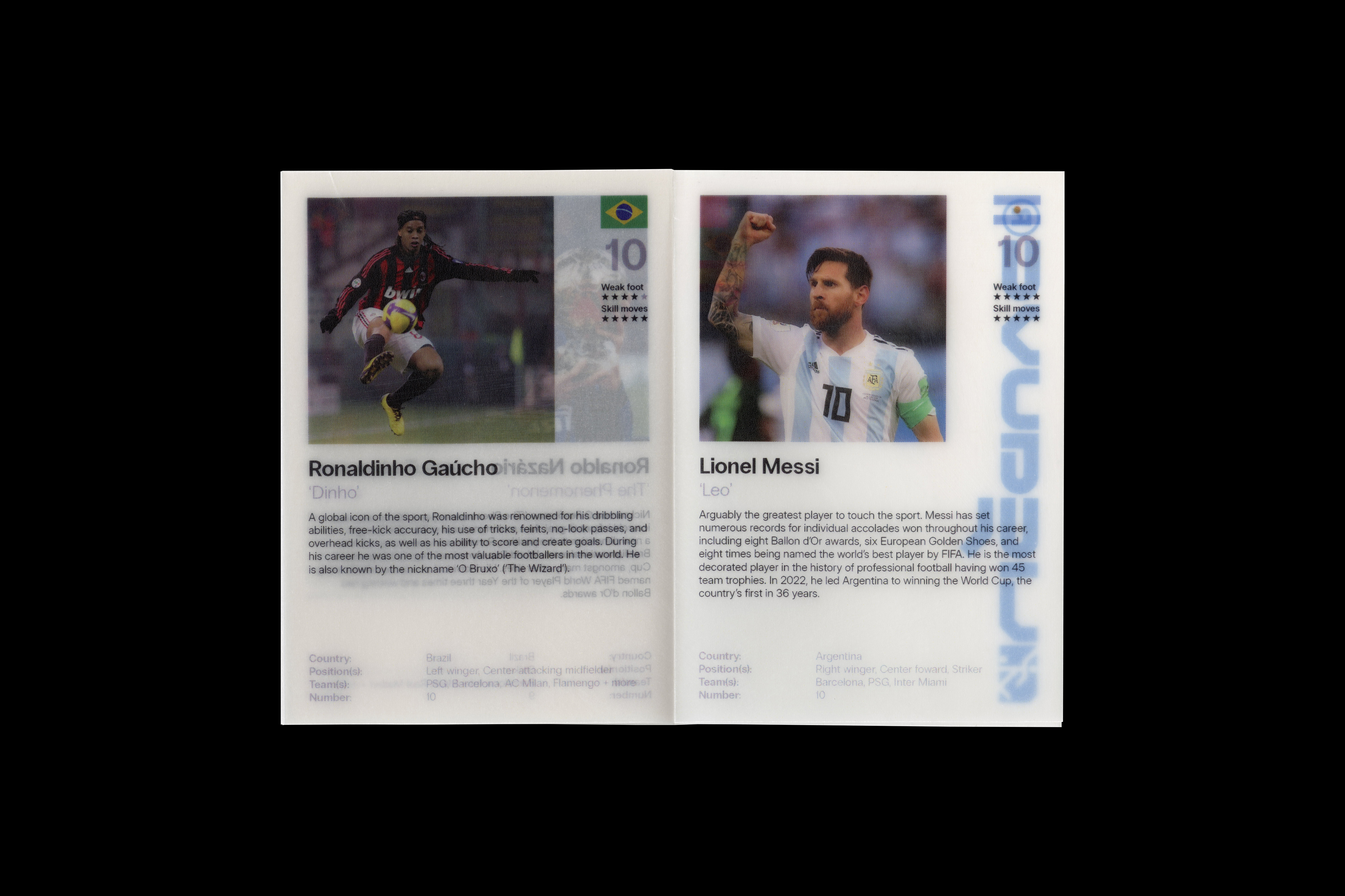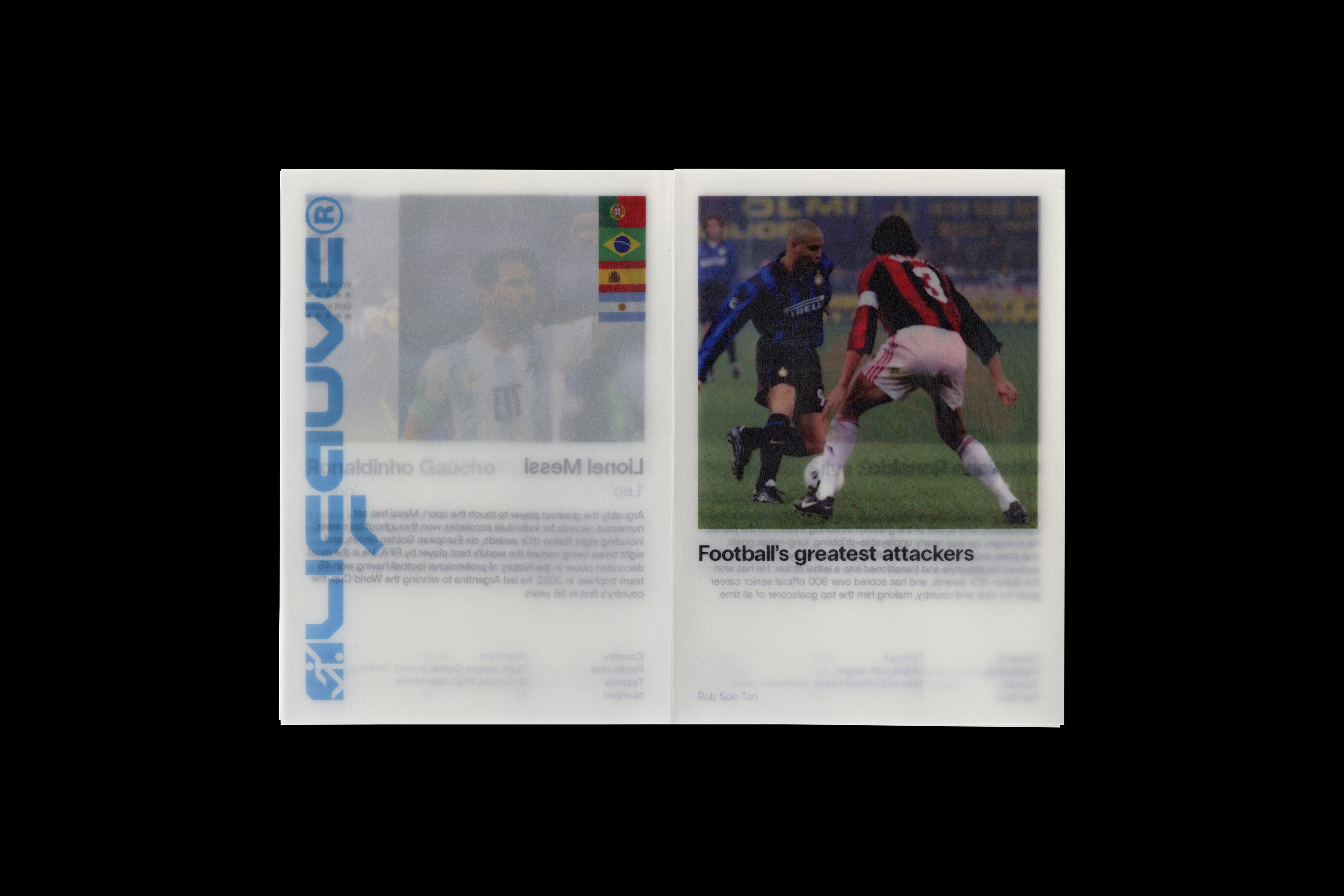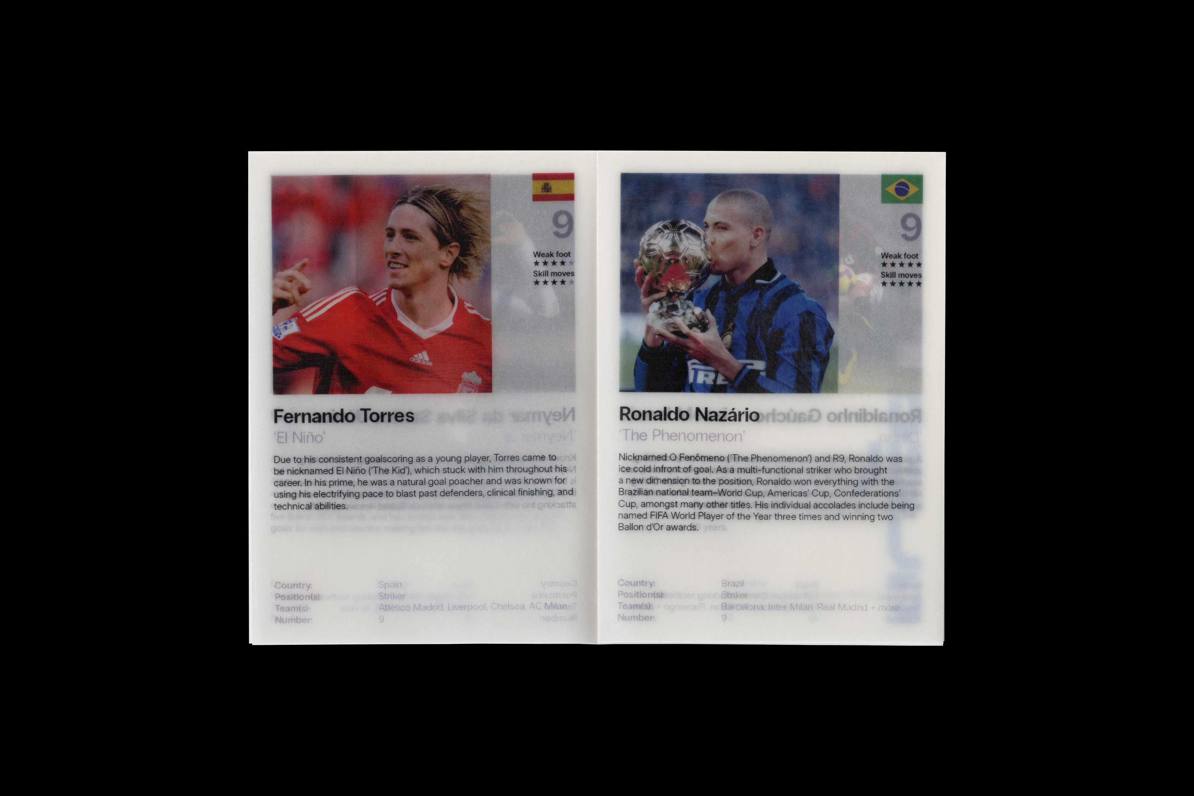 Below is the second zine I made for the class–it's inspired by vintage trading cards and FIFA ultimate team, although most of the layout was reused, this time I printed onto 110GSM paper.